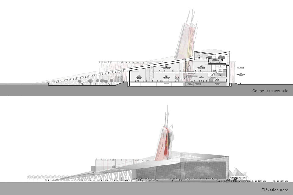 La spatialité du musée est soutenue par un parcours progressant de ‘’l’obscurité’’ vers la ‘’lumière’’. Les façades transparentes sont animées par de projection ainsi que par une multitude d’images numériques enrichissant la ville.