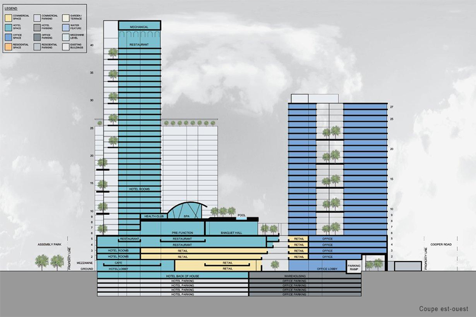 3 tours d’habitations d’une hauteur de 33 étages avec des unités d'habitation de luxe bénéficiant d’une ventilation naturelle transversale avec cours et accès privés.
