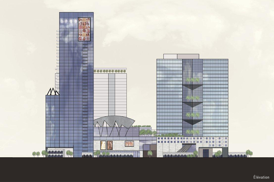 Un hôtel de 565 chambres, comprenant un centre des congrès, des salles de banquets, des salles de réunions, 6 restaurants, un centre d’affaire, un club de santé, ainsi que des espaces de réceptions et de services.