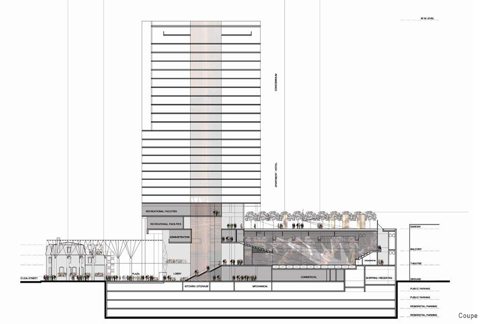 Ce projet multifonctionnel regroupant habitations, usages commerciaux et patrimoniaux, se veut fidèle à la volonté de la ville d’Ottawa de revitaliser le cœur du centre-ville en introduisant une composante résidentielle parmi les usages d’affaires et de commerce.