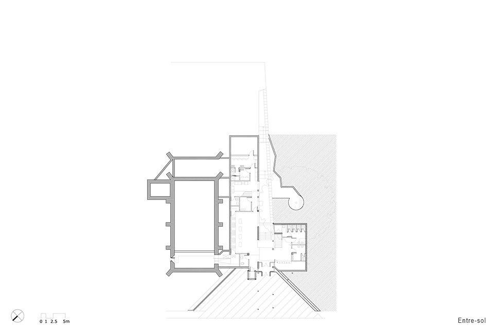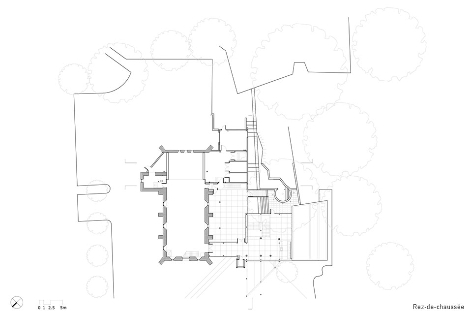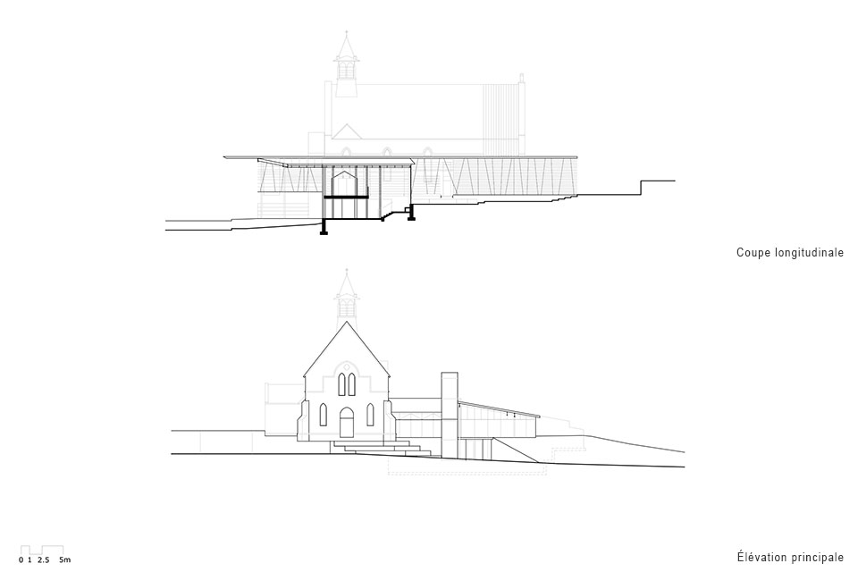 Le projet consiste dans le réaménagement de l’ancienne église ainsi que dans l’ajout des espaces fonctionnels afin de répondre à sa nouvelle vocation culturelle. Bâti en structure métallique avec des parois en verre et en miroirs, le projet se veut une mise en valeur du dialogue de ses deux composantes majeures : l’ancienne église en pierre et le majestueux parc environnant. L’installation du Foyer est déterminée par la volonté de marquer une distanciation critique par rapport à l’objet de valeur du lieu: l’Anglicane.